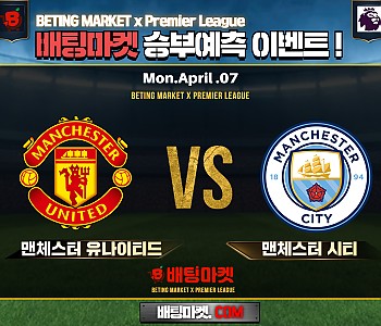 ★ 04월 07일[ 프리미어리그 ] 맨체스터 유나이티드 VS 맨체스터 시티승/패★ 04월07일[ 프리미어리그 ] 맨체스터 유나이티드 VS 맨체스터 시티언더/오버★총 상금5,300P…