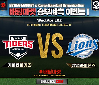 ★ 04월 02일[KBO] 기아타이거즈 VS 삼성라이온즈 승/패★ 04월 02일[KBO]기아타이거즈VS삼성라이온즈언더/오버★총 상금5,300P★승패/언더오버 를 정확히 맞춰주신 당…
