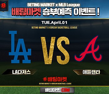 ★ 04월 01일[MLB] LA다저스 VS 애틀랜타 승/패★ 04월 01일[MLB] LA다저스 VS 애틀랜타언더/오버★총 상금6,000P★승패/언더오버 를 정확히 맞춰주신 당첨자 …