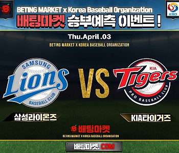 ★ 04월 03일[ KBO ] 삼성라이온즈 VS KIA타이거즈 승/패★ 04월 03일[ KBO ] 삼성라이온즈 VS KIA타이거즈언더/오버★총 상금5,300P★승패/언더오버 를 정…