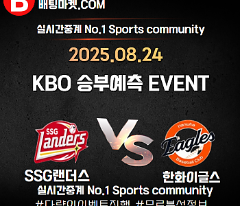 25.08.24 [ KBO ] 한화이글스 VS SSG랜더 ★ 승/패+언더/오버 승부예측 이벤트 !