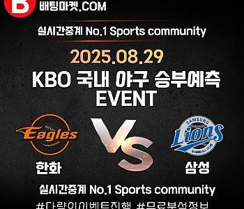 25.08.29 [ KBO ] 한화 VS 삼성 ★ 승/패+언더/오버 승부예측 이벤트 !