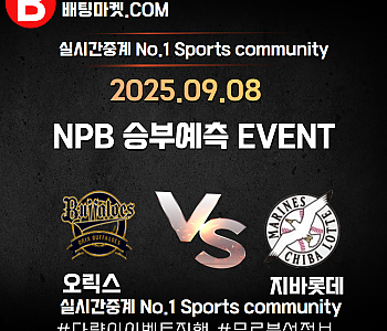 25.09.08 [ NPB ] 지바롯데 VS 오릭스 ★ 승/패+언더/오버 승부예측 이벤트 !