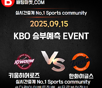 25.09.15 [ KBO ] 한화이글스 VS 키움히어로즈 ★ 승/패+언더/오버 승부예측 이벤트 !