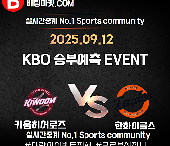 25.09.12 [ KBO ] 한화이글스 VS 키움히어로즈 ★ 승/패+언더/오버 승부예측 이벤트 !