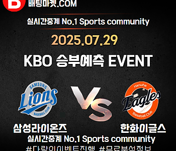 25.07.29 [ KBO ] 삼성 VS 한화이글스 ★ 승/패+언더/오버 승부예측 이벤트 !