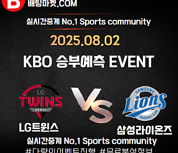 25.08.02 [ KBO ] 삼성라이온즈 VS LG트윈스 ★ 승/패+언더/오버 승부예측 이벤트 !
