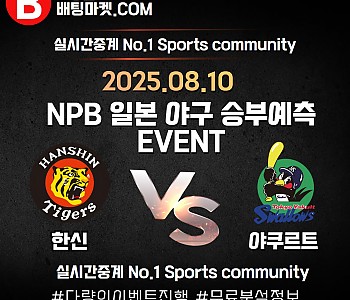 25.08.10 [ NPB ] 한신 VS 야쿠르 ★ 승/패+언더/오버 승부예측 이벤트 !