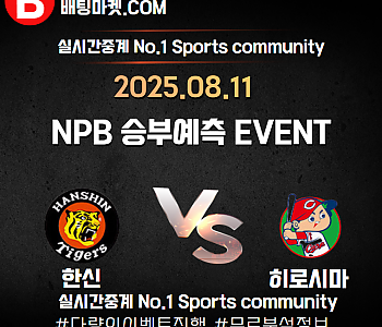 25.08.11 [ NPB ] 히로시마 VS 한신 ★ 승/패+언더/오버 승부예측 이벤트 !