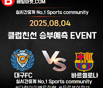 ★ 08월 04일[친선축구] 대구FCVS 바르셀로나 승/패★ 08월 04일[친선축구] 대구FCVS 바르셀로나언더/오버★총 상금5,300P★승패/언더오버 를 정확히 맞춰주신 당첨자 …