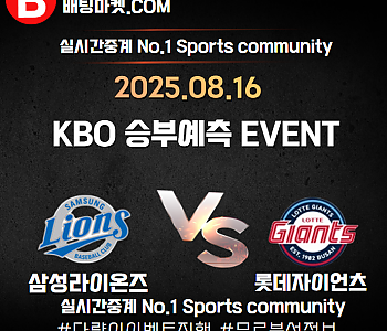 25.08.16 [ KBO ] 롯데자이언츠 VS 삼성라이온즈 ★ 승/패+언더/오버 승부예측 이벤트 !