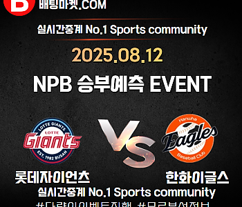 25.08.12 [ KBO ] 한화이글스 VS 롯데자이언츠 ★ 승/패+언더/오버 승부예측 이벤트 !