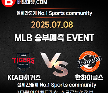 ★ 07월 08일[KBO] 기아타이거즈VS 한화이글스 승/패★ 07월 08일[MLB] 기아타이거즈VS 한화이글스언더/오버★총 상금5,300P★승패/언더오버 를 정확히 맞춰주신 당첨…