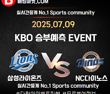 ★ 07월 09일[KBO] NC다이노스VS 삼성라이온즈 승/패★ 07월 08일[KBO] NC다이노스VS 삼성라이온즈언더/오버★총 상금5,300P★승패/언더오버 를 정확히 맞춰주신 …
