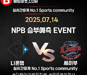 25.07.14 [ NPB ] 세이부 VS 니혼햄 ★ 승/패+언더/오버 승부예측 이벤트 !