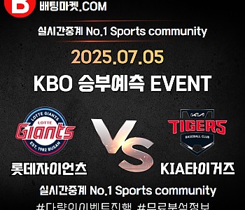 ★ 07월 05일[KBO] 롯데자이언츠VS KIA타이거즈 승/패★ 07월 05일[KBO] 롯데자이언츠VS KIA타이거즈언더/오버★총 상금5,300P★승패/언더오버 를 정확히 맞춰주…
