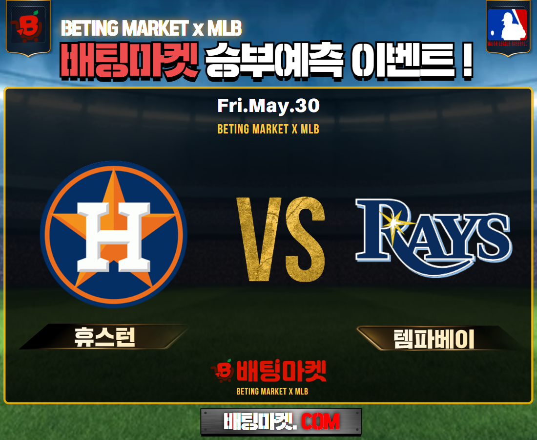 25.05.30 [ MLB ] 휴스턴 VS 템파베이 ★ 승/패+언더/오버 승부예측 이벤트 !