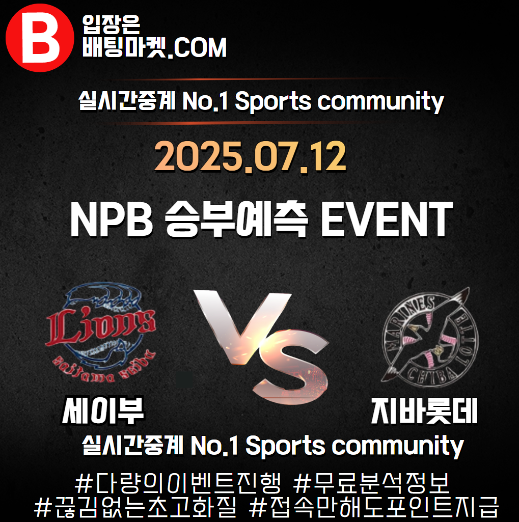 25.07.12 [ NPB ] 세이부 VS 지바롯데 ★ 승/패+언더/오버 승부예측 이벤트 !