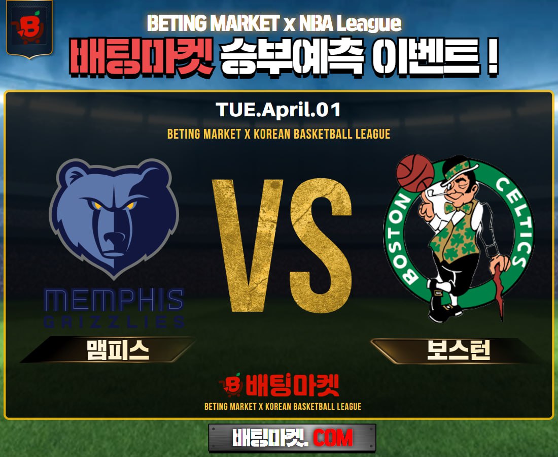 25.04.01 [ NBA ] 멤피스 VS 보스턴 ★ 승/패+언더/오버 승부예측 이벤트 !