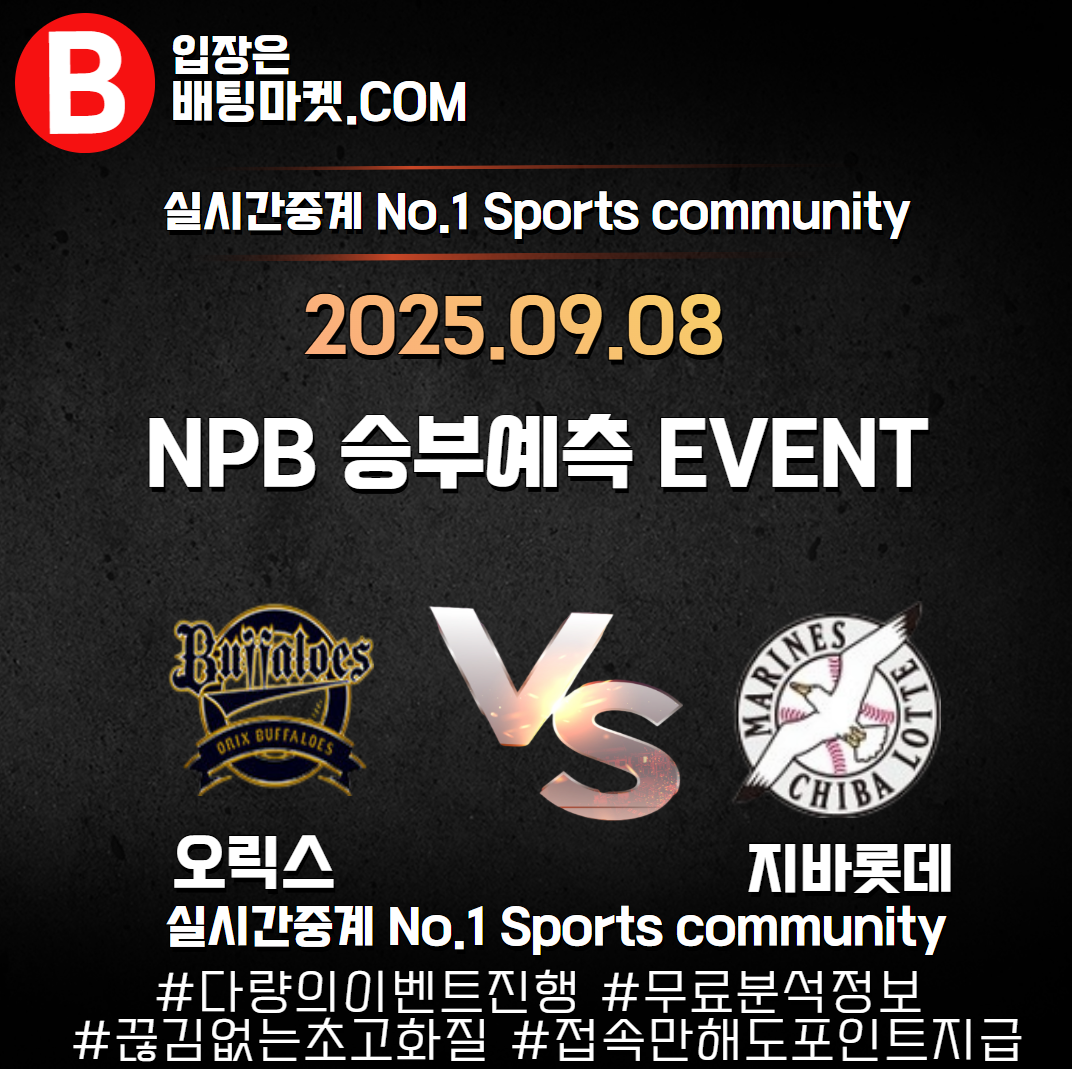 25.09.08 [ NPB ] 지바롯데 VS 오릭스 ★ 승/패+언더/오버 승부예측 이벤트 !