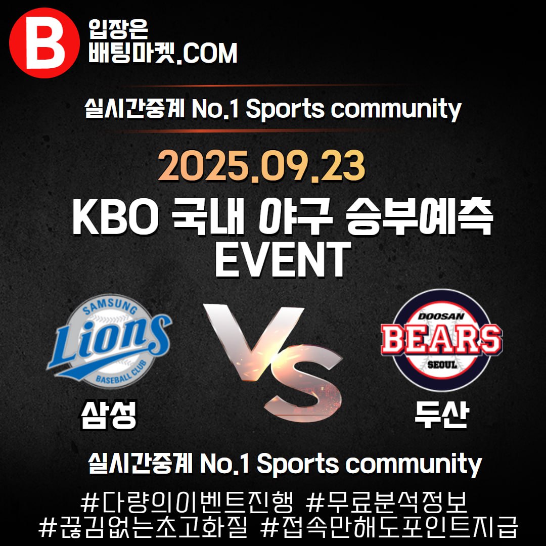 25.09.22 [ KBO] 삼성라이온즈 VS 두산베어스 ★ 승/패+언더/오버 승부예측 이벤트 !