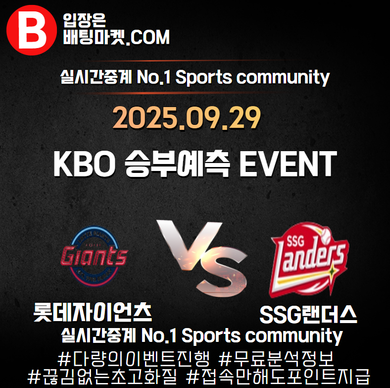 25.09.29 [ KBO] SSG랜더스 VS 롯데자이언츠 ★ 승/패+언더/오버 승부예측 이벤트 !