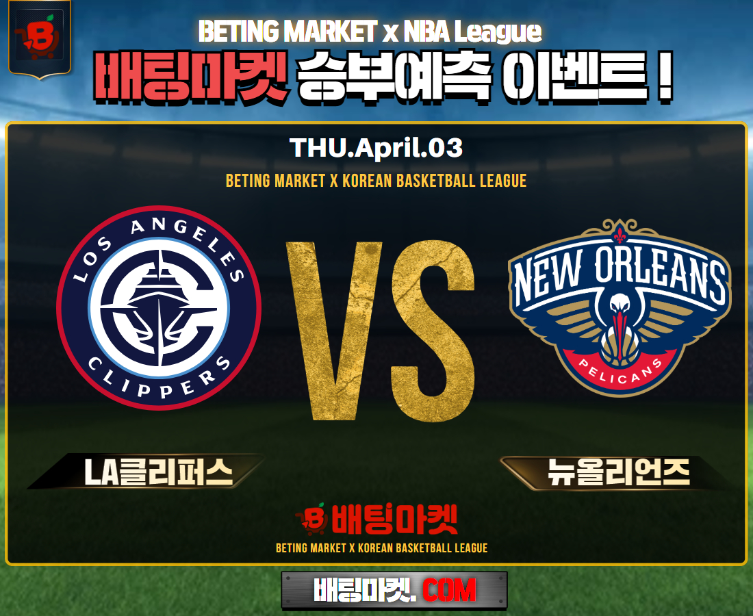 25.04.03 [ NBA ] LA클리퍼스 VS 뉴올리언즈 ★ 승/패+언더/오버 승부예측 이벤트 !