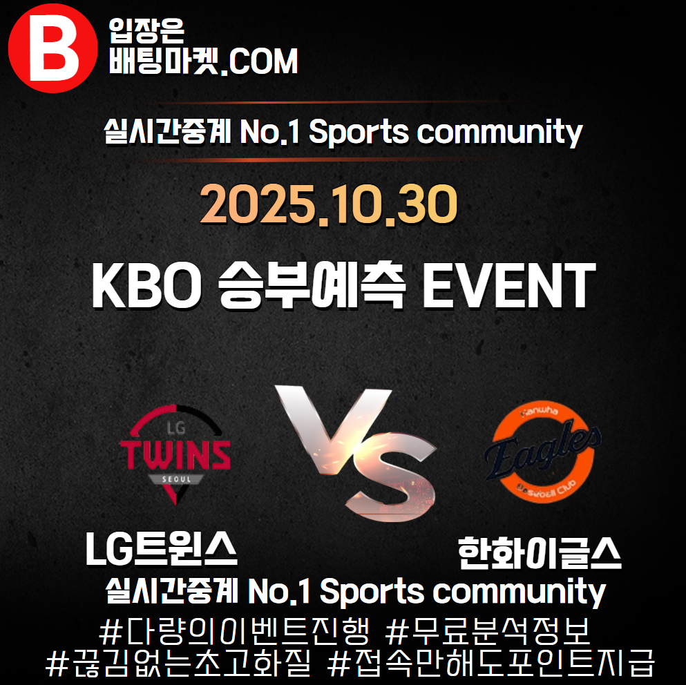 25.10.30 [KBO] 한화이글스 VS LG트윈스 ★ 승/패+언더/오버 승부예측 이벤트 !