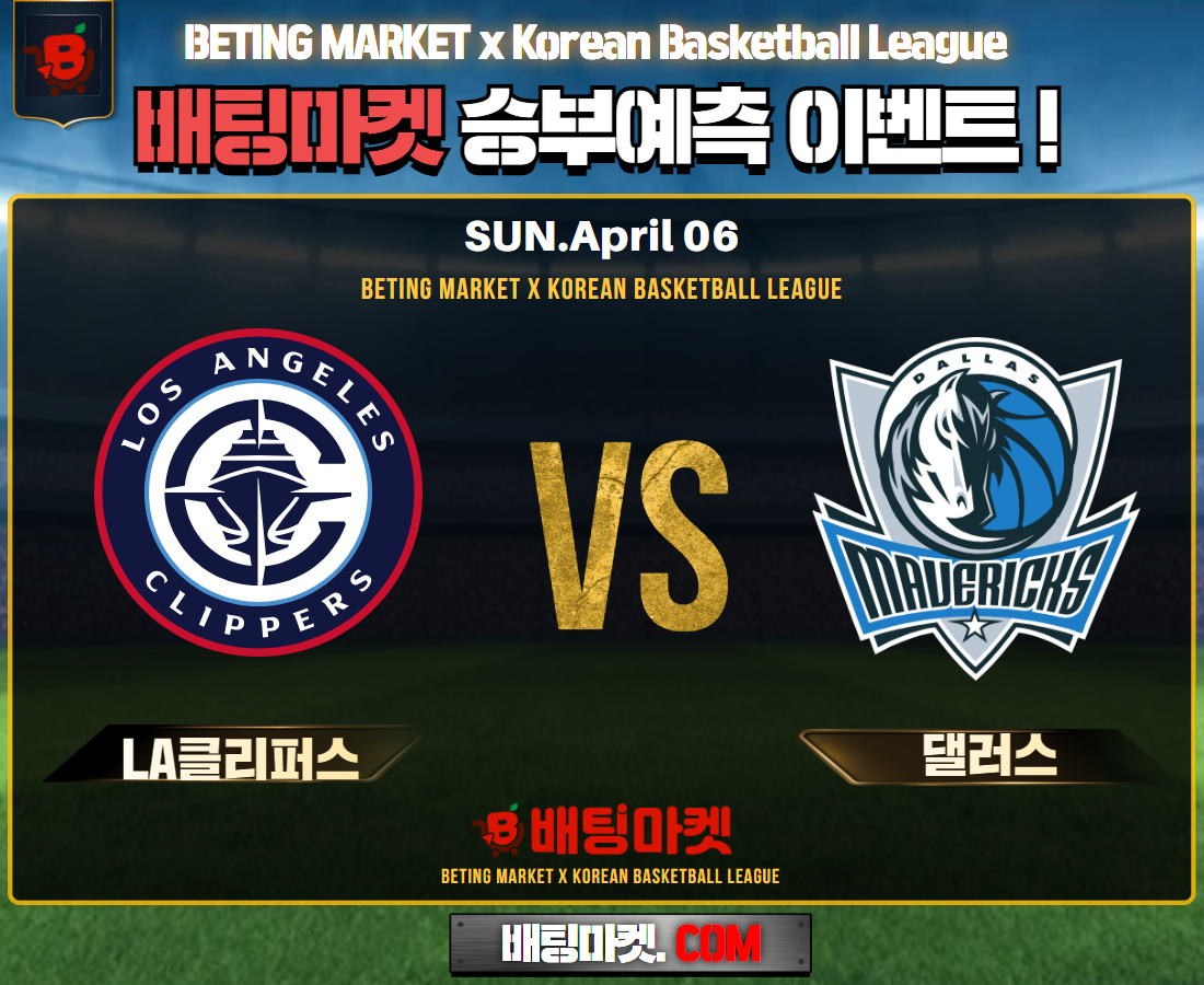 25.04.06 [ NBA ] LA클리퍼스 VS 댈러스 ★ 승/패+언더/오버 승부예측 이벤트 !