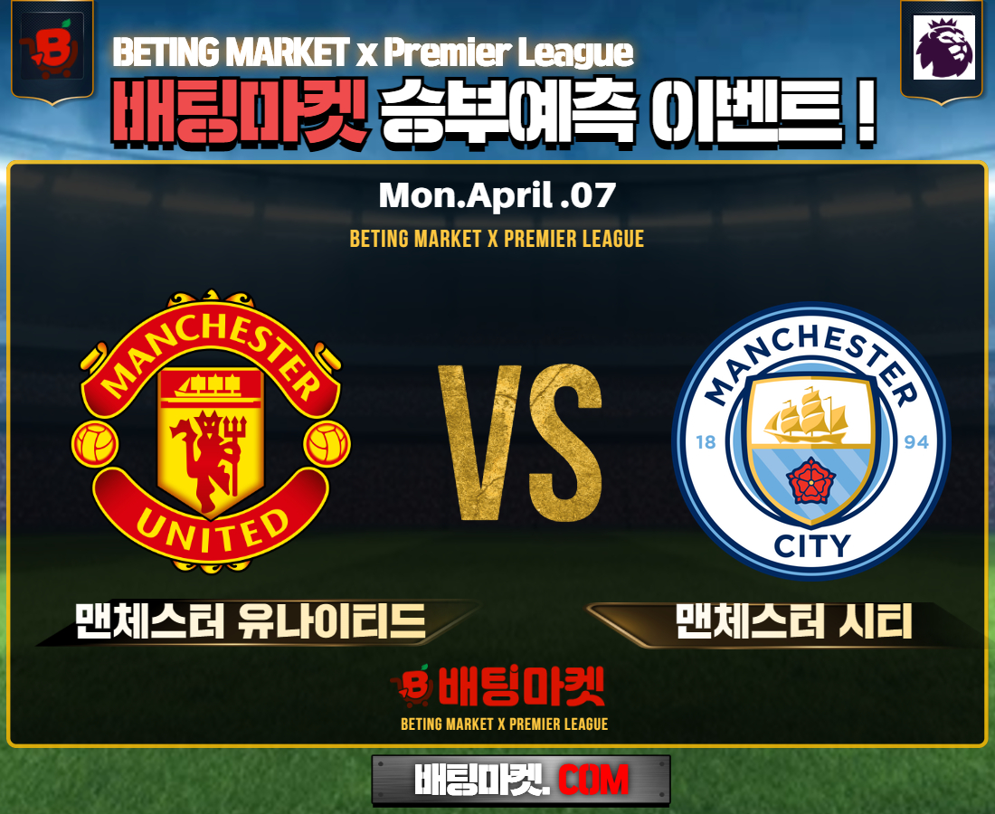 25.04.07 [프리미어리그] 맨체스터 유나이티드 VS 맨체스터 시티 승/패+언더/오버 승부예측 이벤트 !