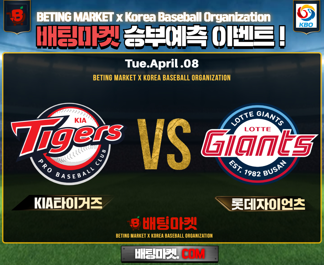 25.04.08 [ KBO ] KIA타이거즈 VS 롯데자이언츠 ★ 승/패+언더/오버 승부예측 이벤트 !
