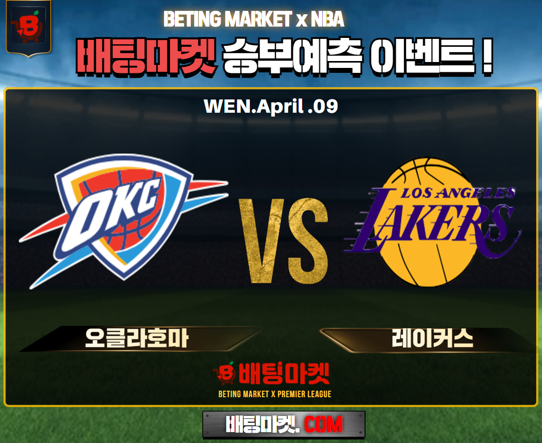 25.04.09 [ NBA ] 오클라호마 VS 레이커스 ★ 핸승/핸패+언더/오버 승부예측 이벤트 !