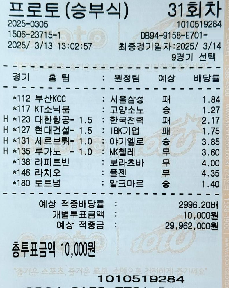 3월 14일 [ 2996.20배 ] 적중내역