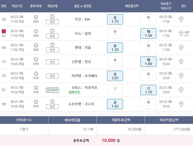 6월 3일 국내야구,일본야구 1장공유