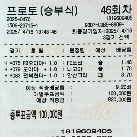 9.2배 / 10.3배 적중내역