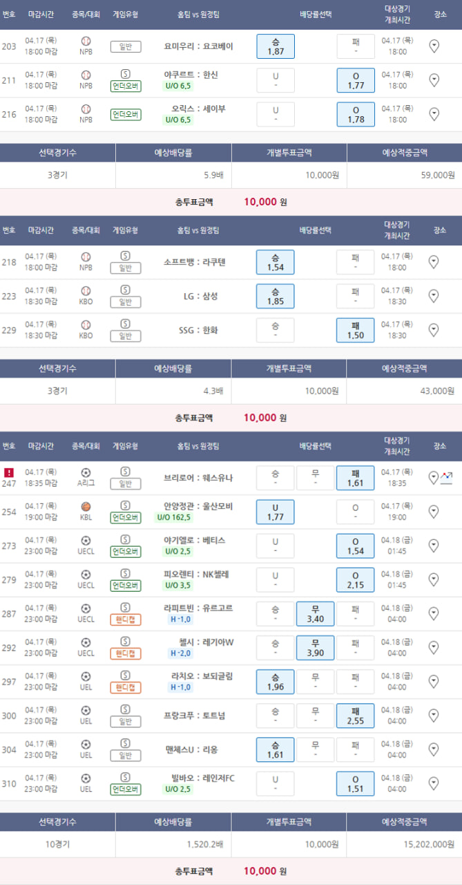 04월 17일 베트맨 46회차 최대 955배!